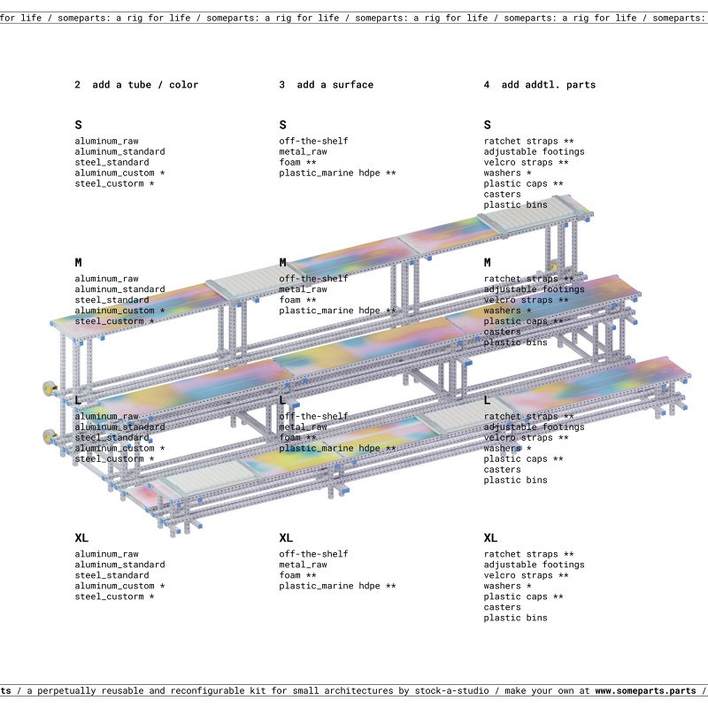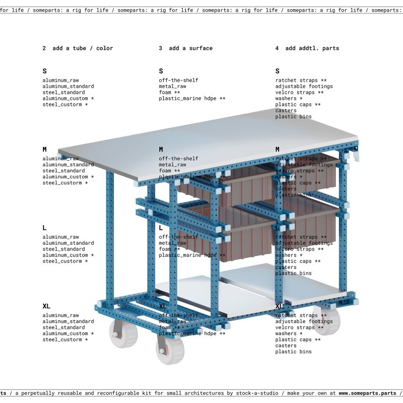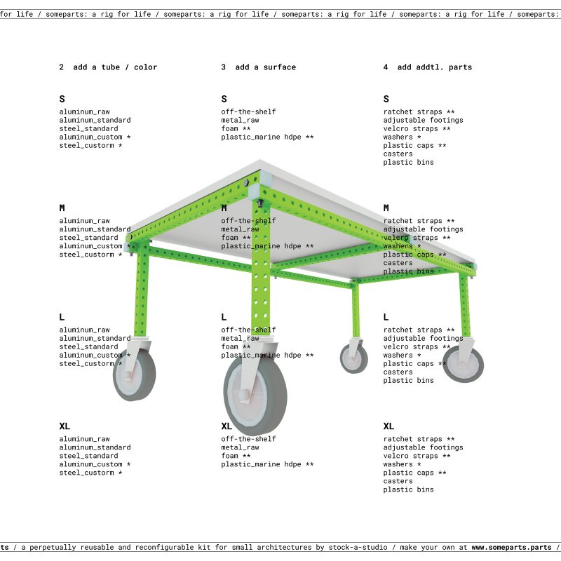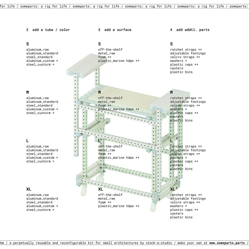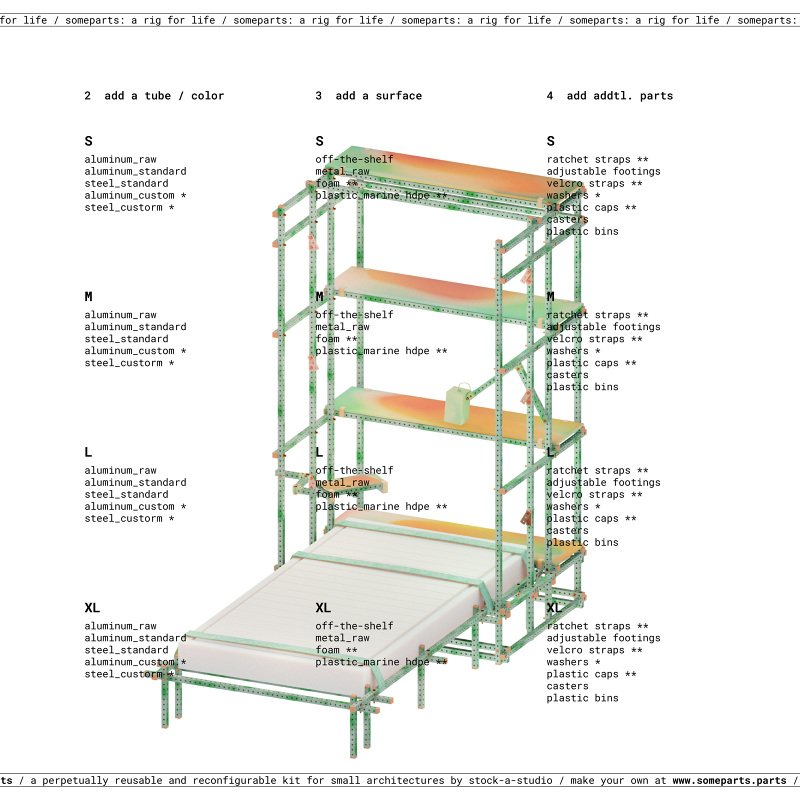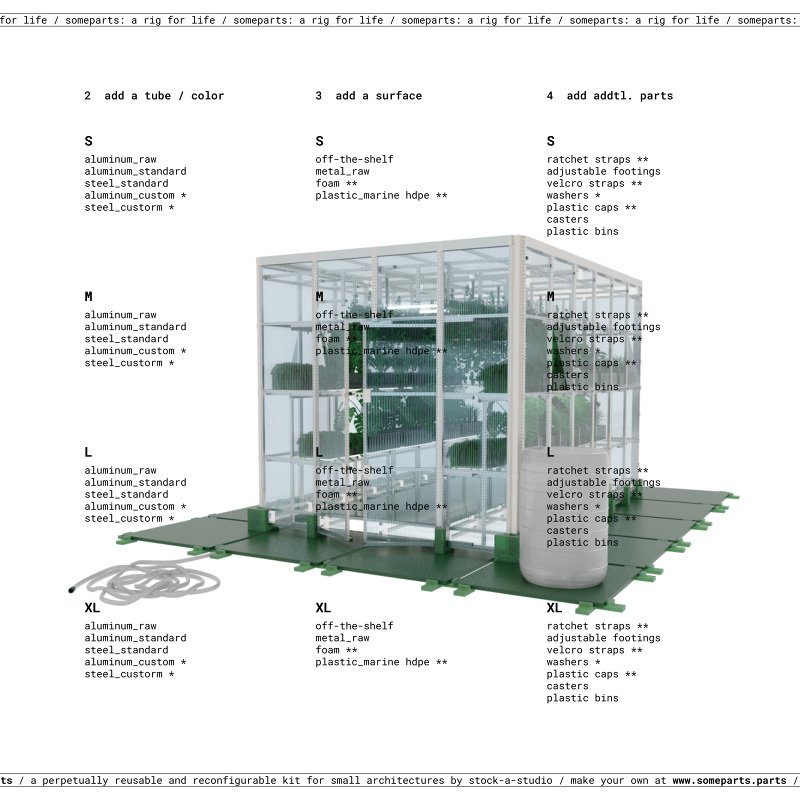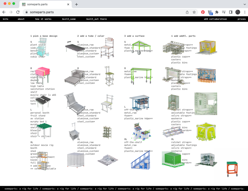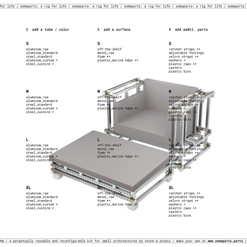 someparts.parts is a customizable kit for perpetually reusable architectures and furnitures.