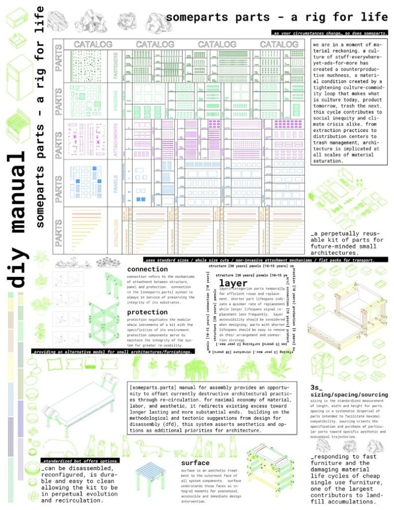 someparts.parts is a kit for perpetually reusable architectures and furnitures. someparts.parts
