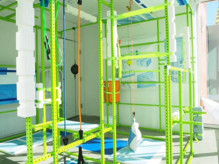 [ a kit of these some parts ] x budget gym ] is a temporary architecture in-service of the activity: in this case, the activity of working out. Co-opting the formulas of rentable event-tents and trade show booths, where poles,…