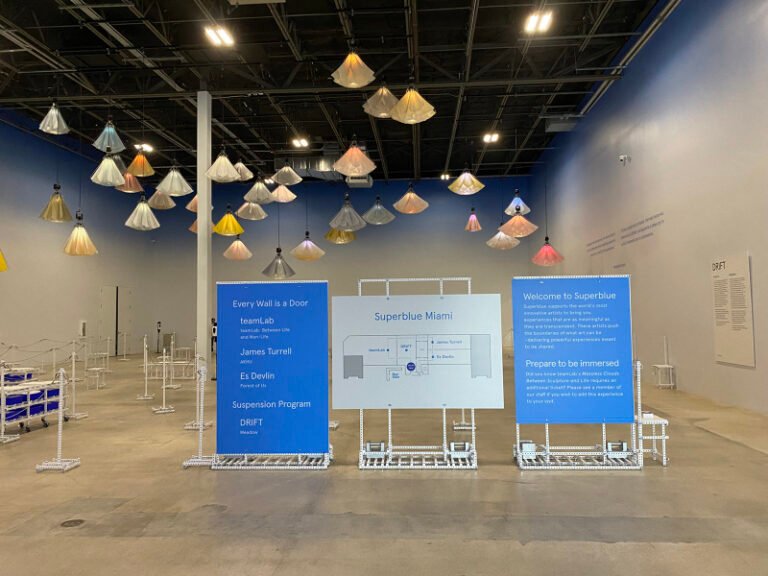 Expansive 12000SF lobby and gallery interior fitout for Miami's Superblue XR Art Museum.