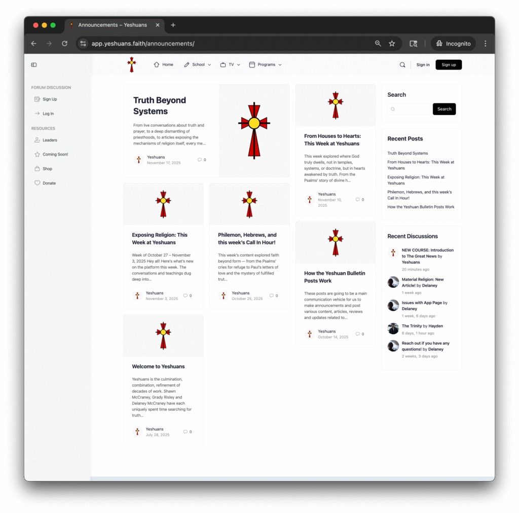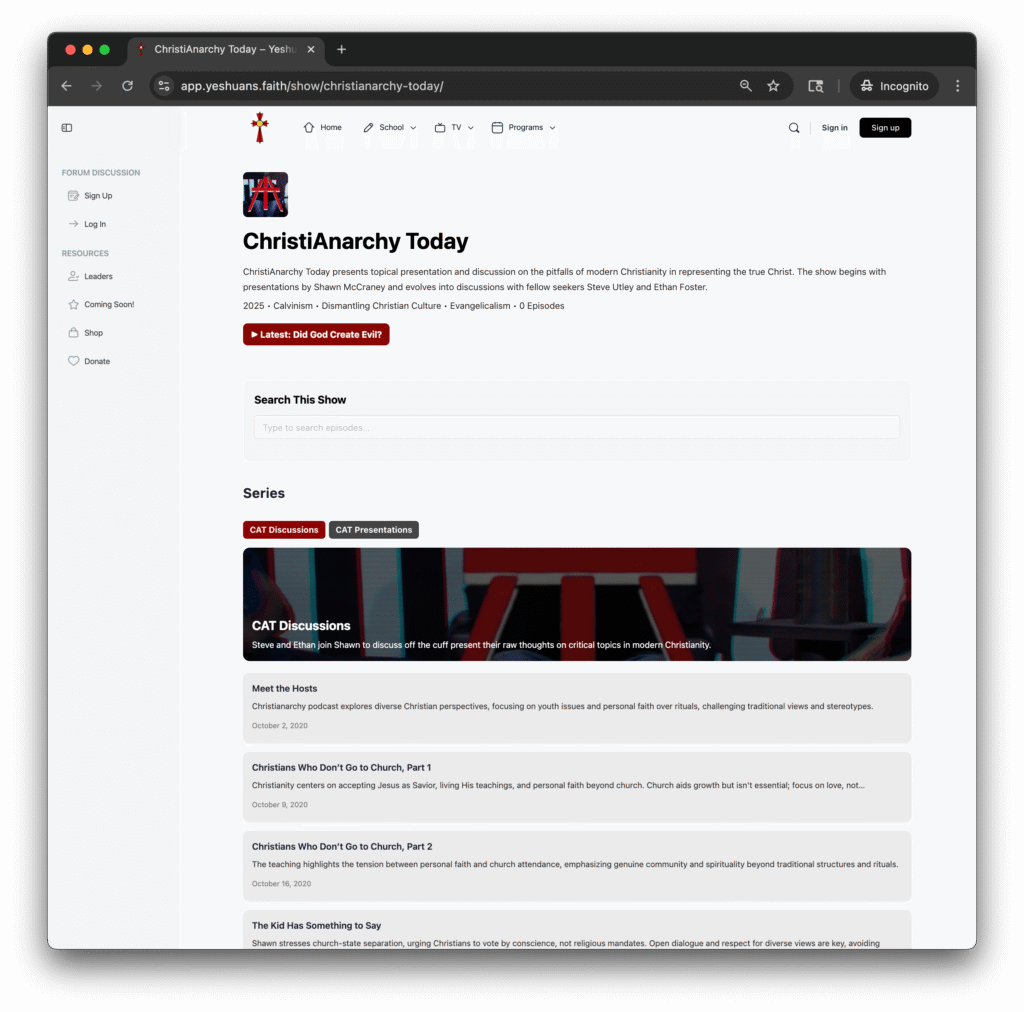 Yeshuans is a subjective, non-institutional faith platform by Shawn & Delaney McCraney, offering 10,000+ hours of content to dismantle religious authority claims.
